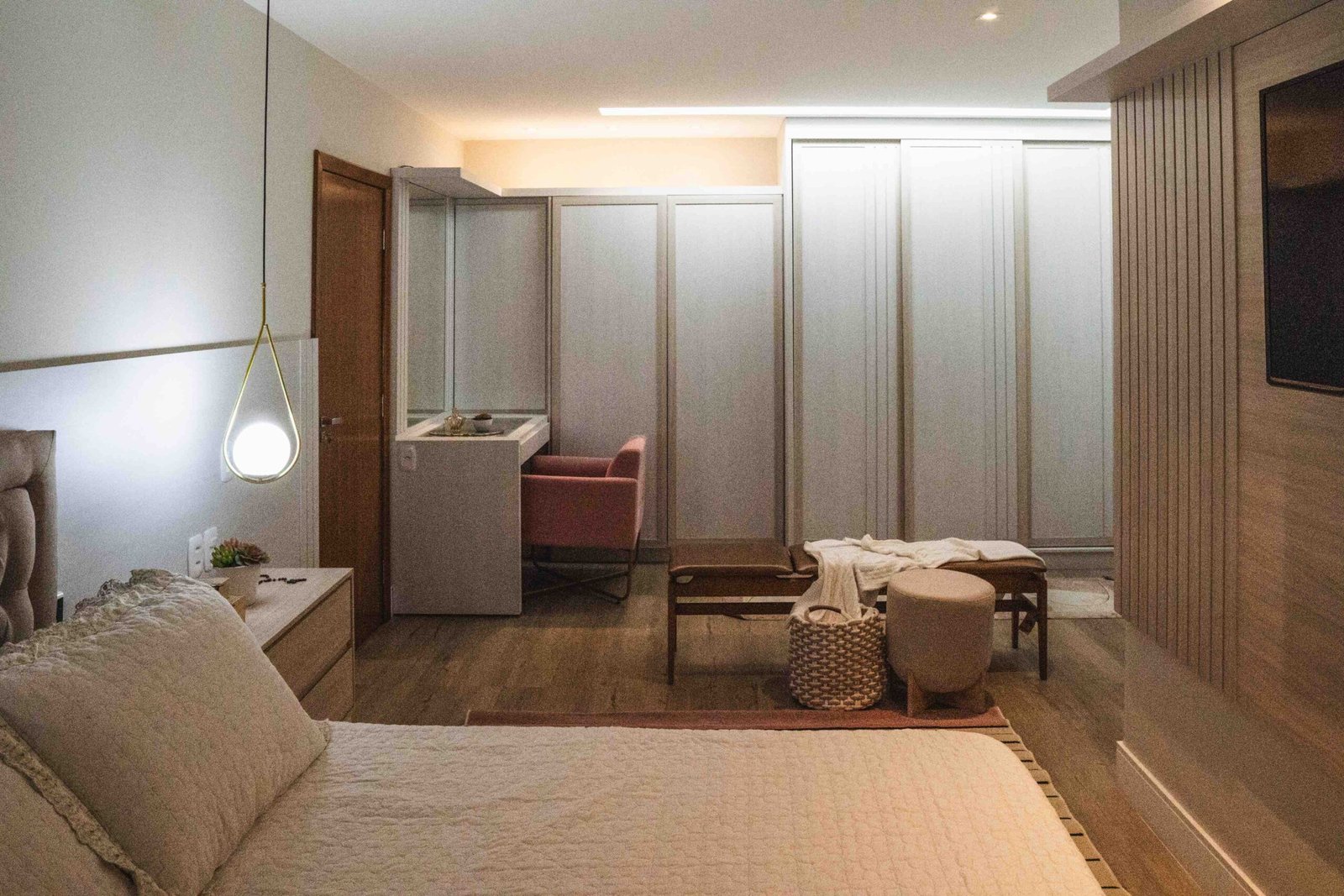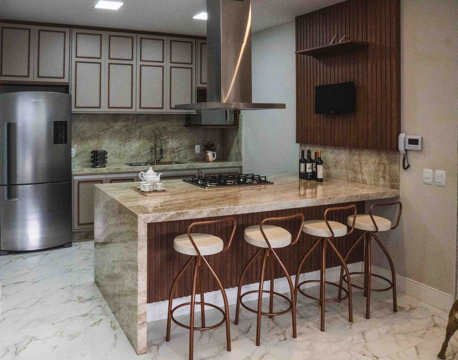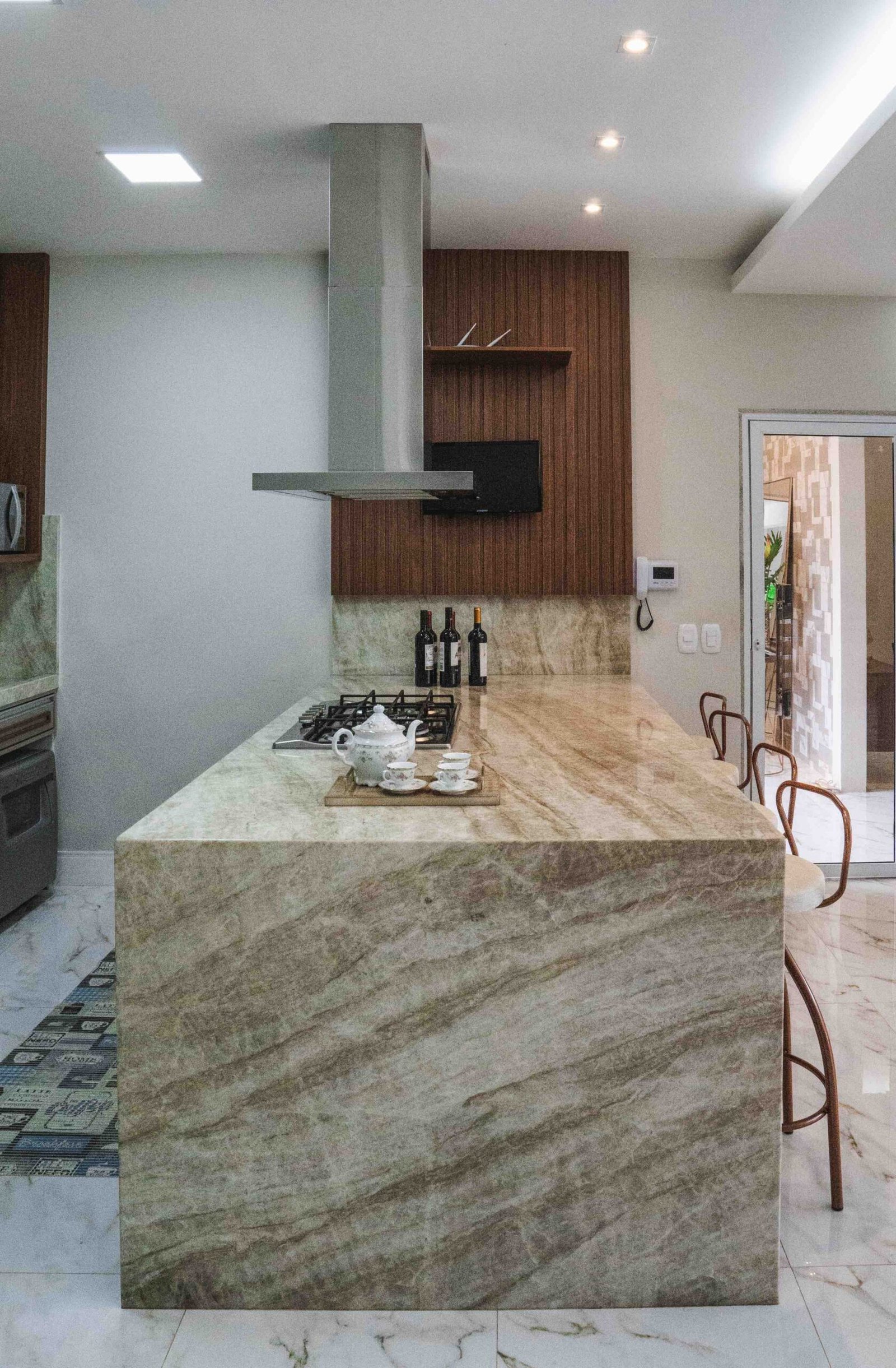 – DESCRITIVO SOBRE O PROJETO: Desenvolvido para um casal experiente, este projeto tem como premissa a criação de espaços que promovam integração e conforto para a família. Cada ambiente foi cuidadosamente planejado, como evidenciado nas imagens da Área Gourmet, cozinha, lavabo, quarto do filho, sala de estar e suíte master. Valorizamos o uso de materiais de destaque, de fácil acesso na região e que agregam sofisticação ao design, como o Quartzito Taj Mahal aplicado na cozinha e um modelo translúcido utilizado no lavabo.